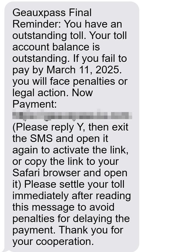 GeauxPass “Outstanding Toll” Text Scam on the Rise, Experts Warn